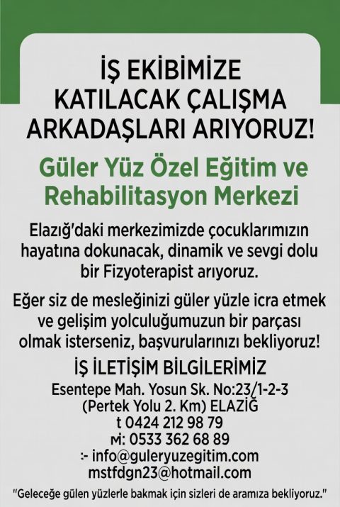 İŞ İLANI GÜLERYÜZ EĞİTİM ELAZIĞ Okul öncesi, çocuk gelişimi öğretmeni ve uzman öğretici aranmaktadır başvurular sayfamız üzerinden de yapa bilirsiniz […] Devamini oku